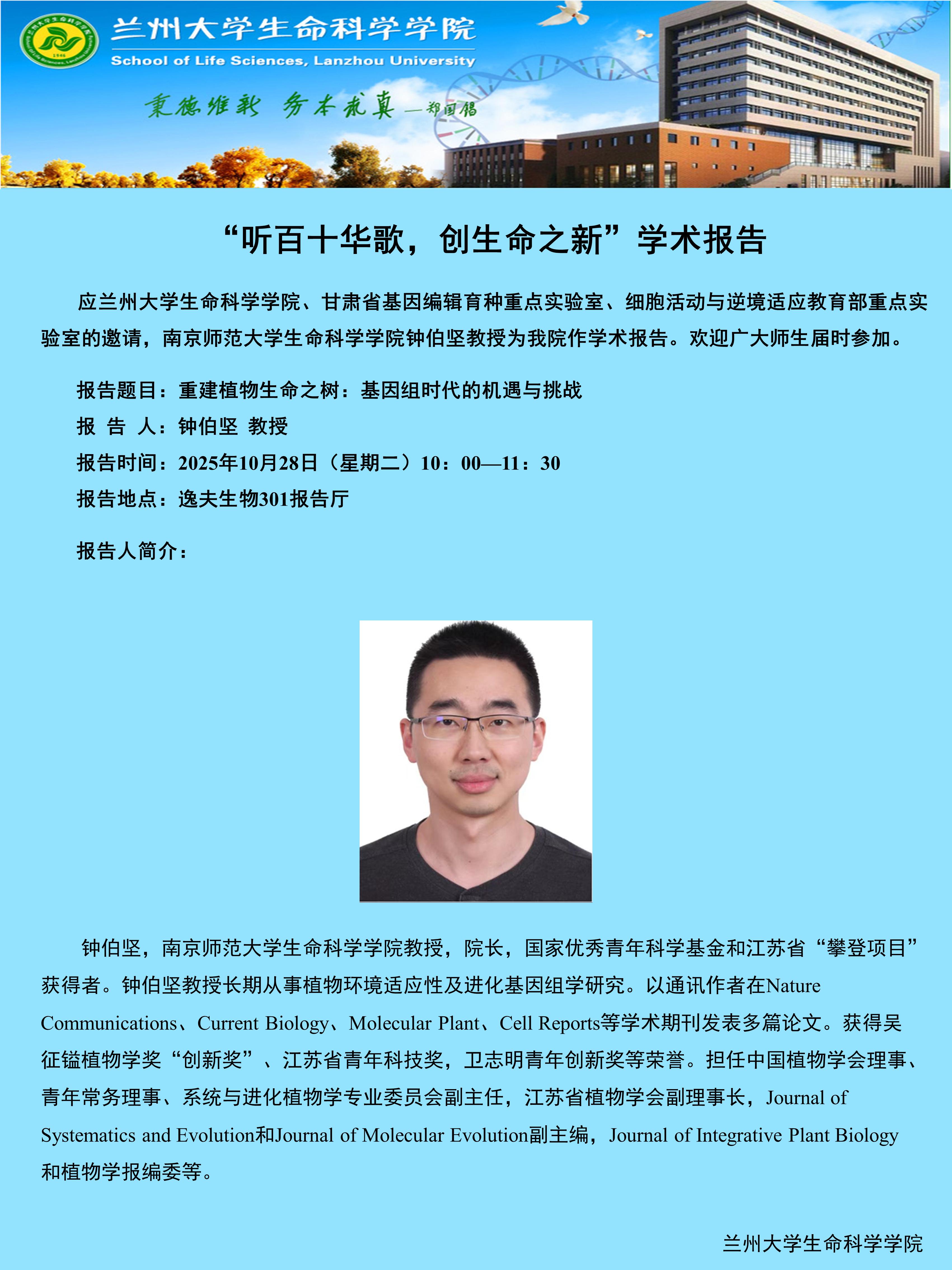 应兰州大学生命科学学院、甘肃省基因编辑重点实验室和细胞活动与逆境适应教育部重点实验室联合邀请,北京大学陈建国教授于2025年6月10日下午为我院教师作题为“生物科学‘101计划’及细胞与分子生物学教材建设”的报告。本次学术活动由生命科学学院院长侯岁稳教授主持,学院15门主干课程教学团队教师、新入职青年教师和部分研究生参加。陈建国教授简要介绍了“101”计划的背景,以及通过课程、教材、教师和实践项目等基础要素建...