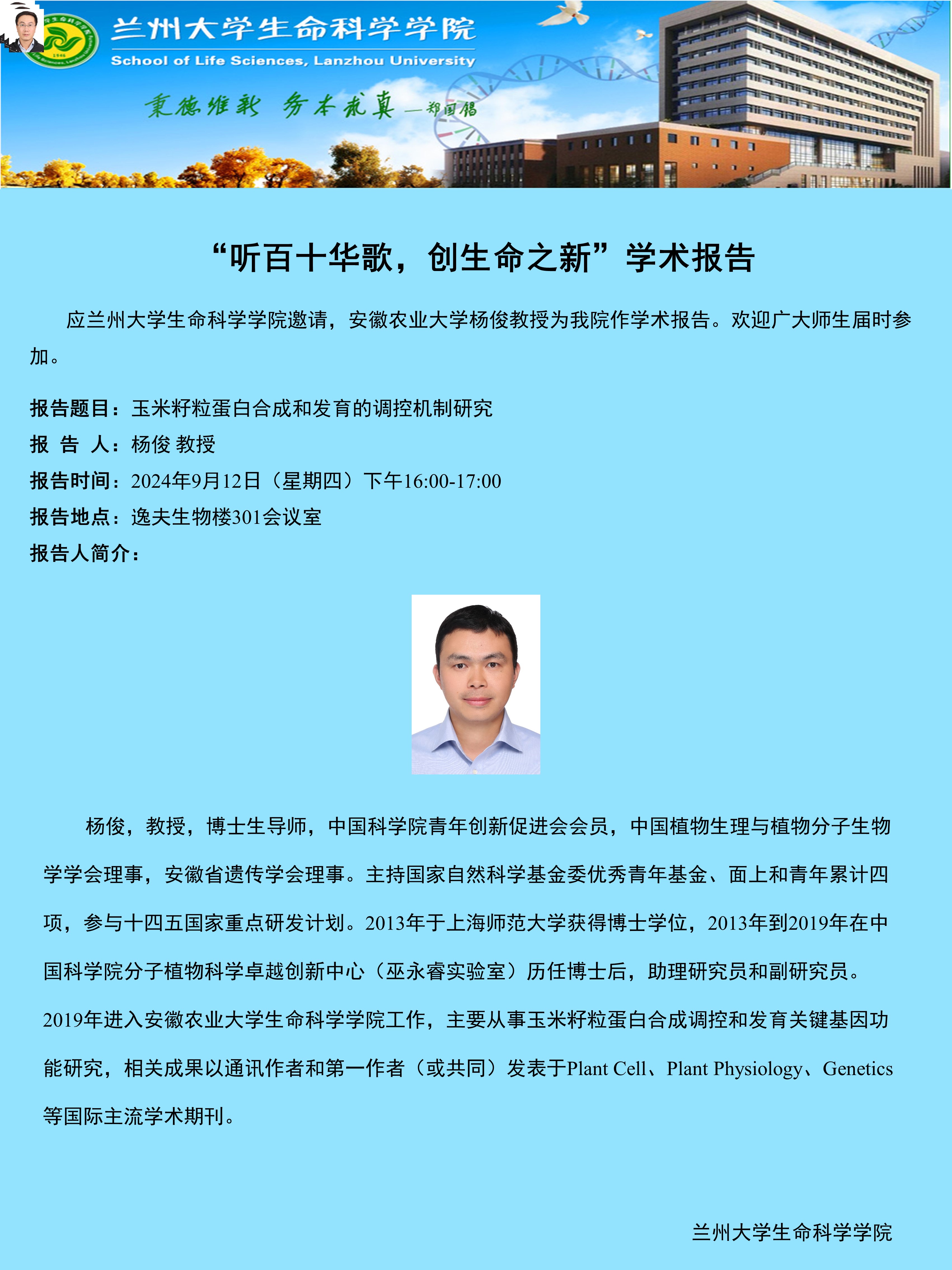 “听百十华歌,创生命之新”学术报告——杨俊教授