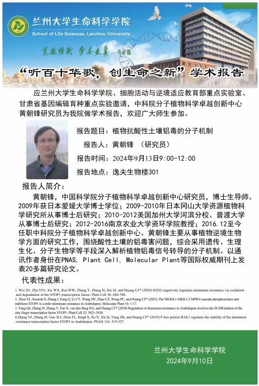 “听百十华歌,创生命之新”学术报告——黄朝锋研究员
