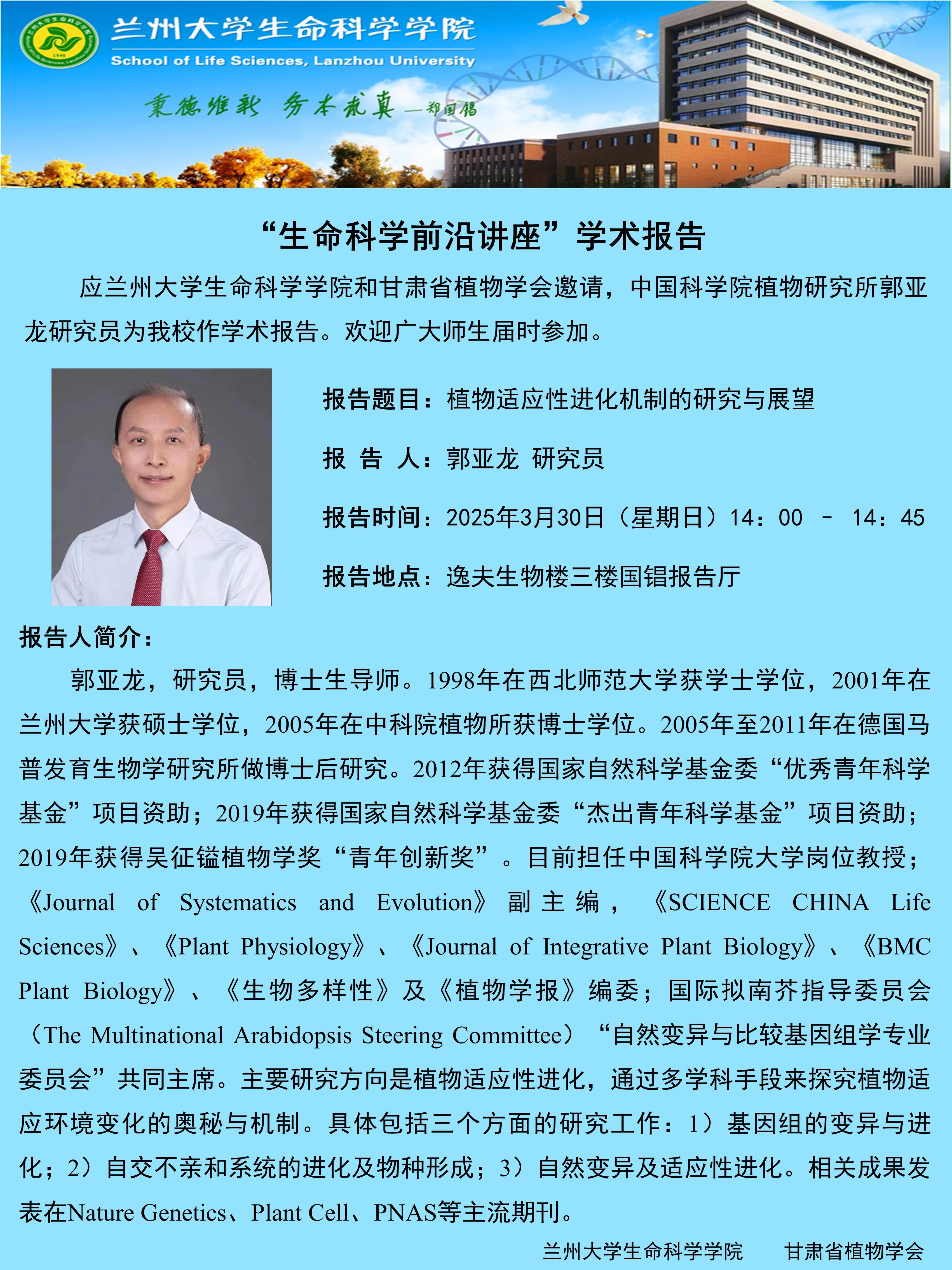 “生命科学前沿讲座”学术报告——郭亚龙研究员