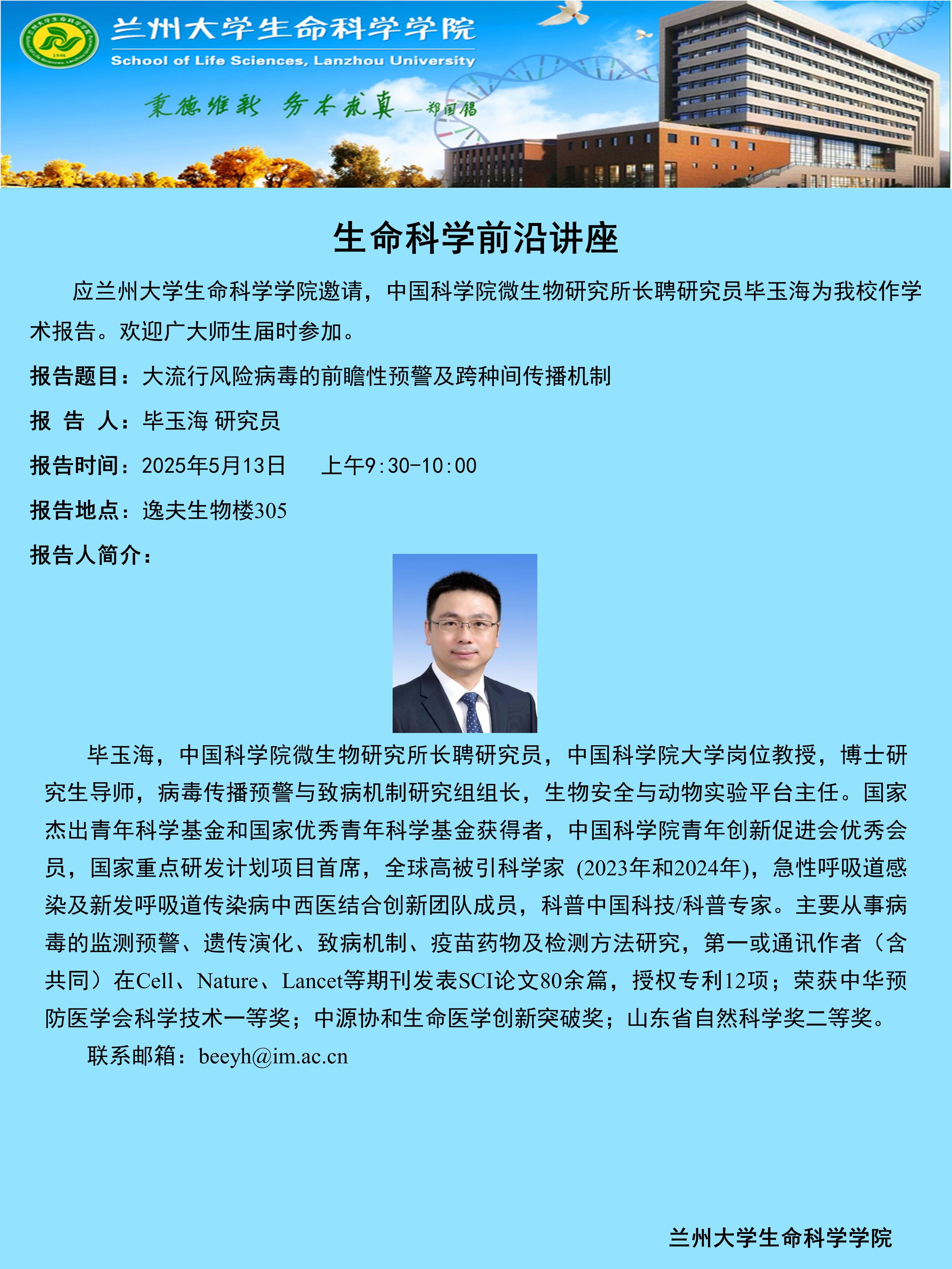 生命科学前沿讲座——毕玉海研究员