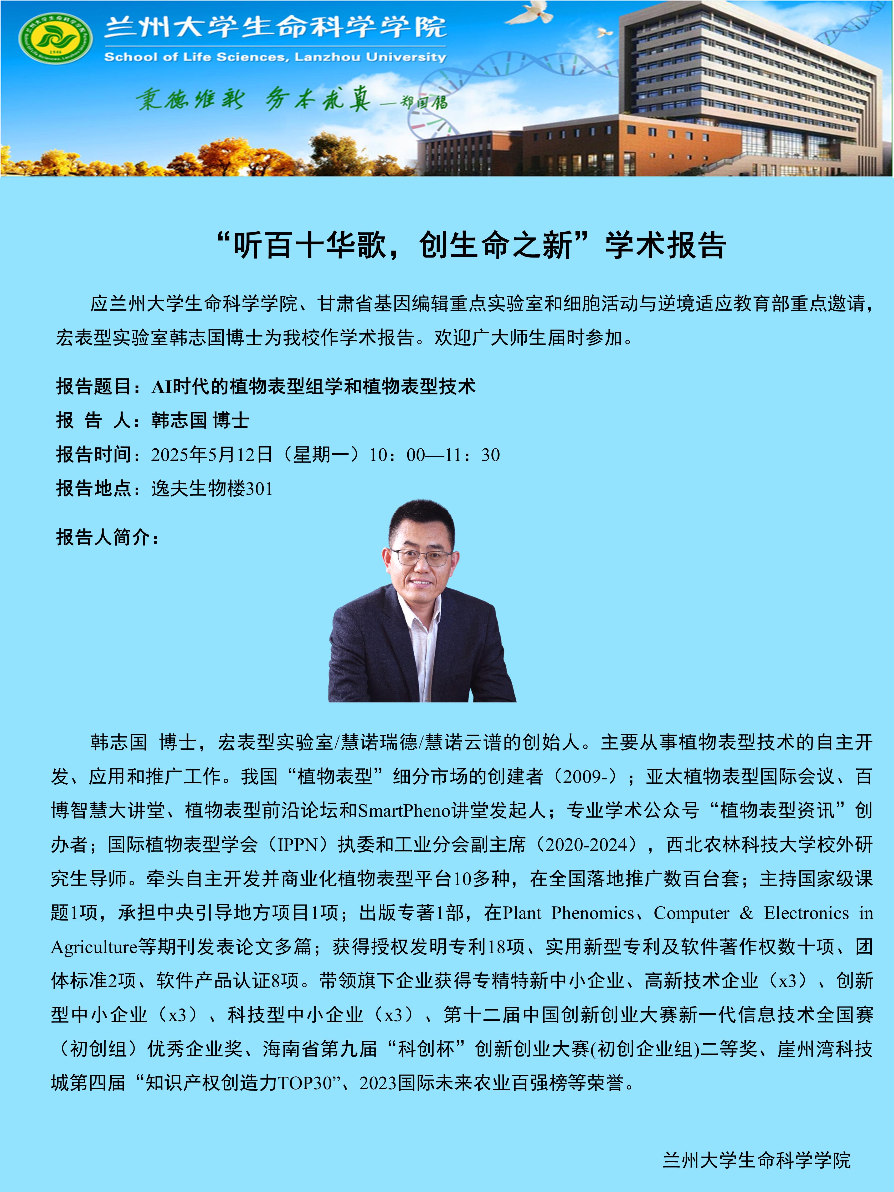 “听百十华歌,创生命之新”学术报告——韩志国博士
