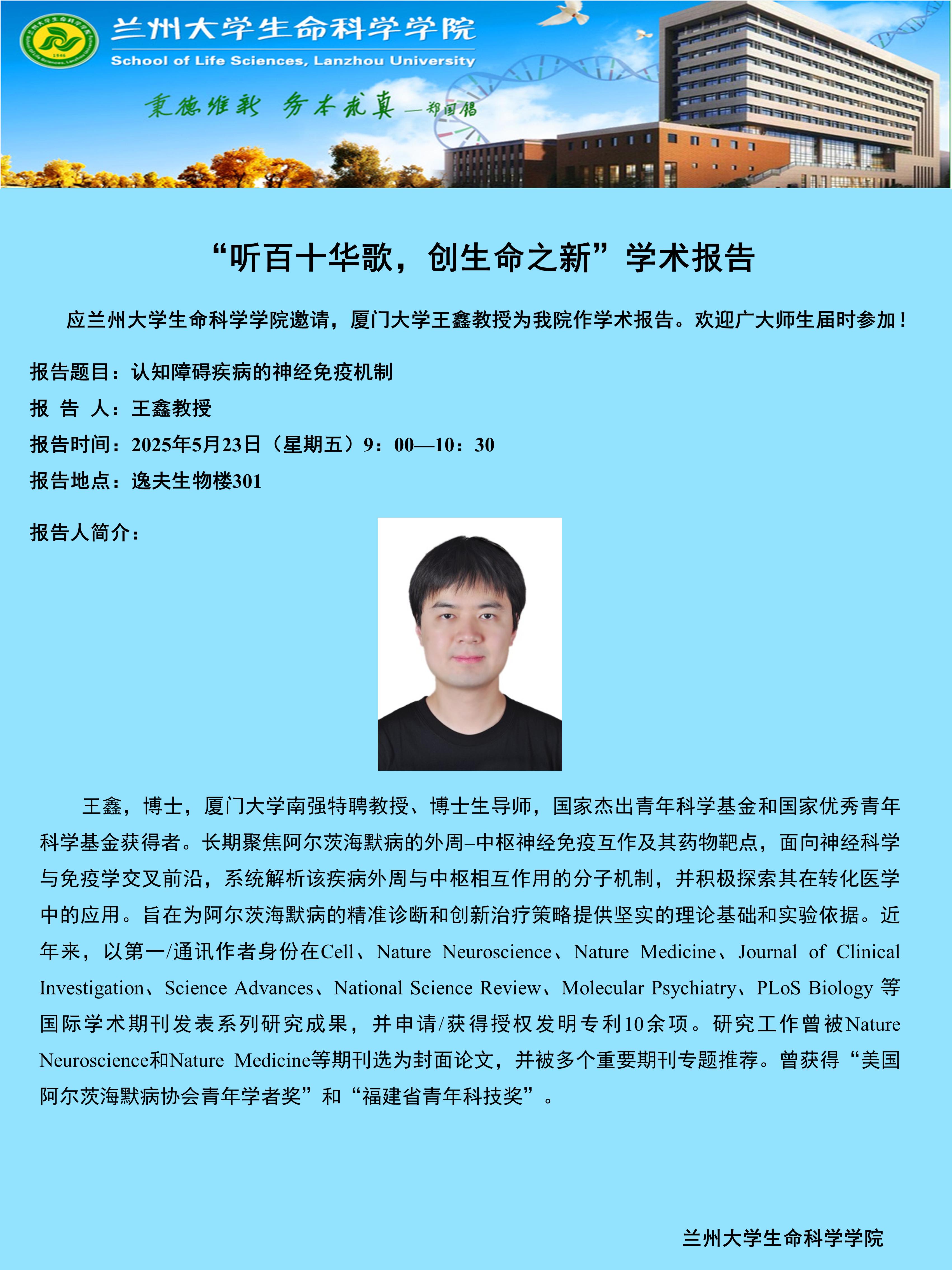 听百十华歌,创生命之新”学术报告——王鑫教授