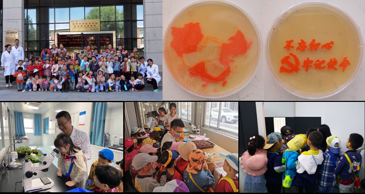 6月3日,兰州大学幼儿园60多个孩子来到生命科学研究实验中心参加科普开放日活动。这次活动除中心、甘肃省细胞生物学学会参加外我院微生物学、植物学以及动物学等很多师生参与,为小朋友们展示了五彩缤纷的昆虫标本、无限创意的细菌画、温室里的植物幼苗以及显微镜下的荧光世界等,同时把爱国教育融入科普活动中,给兰州大学幼儿园的小朋友们带来了不一样的科学体验。